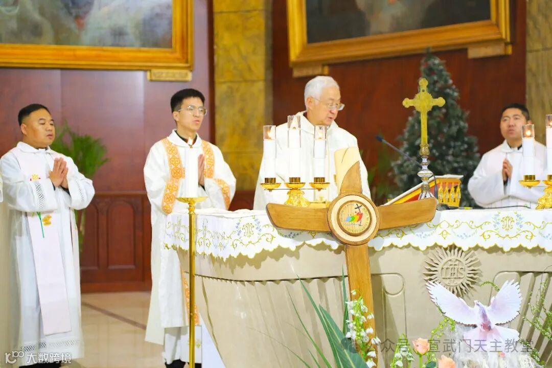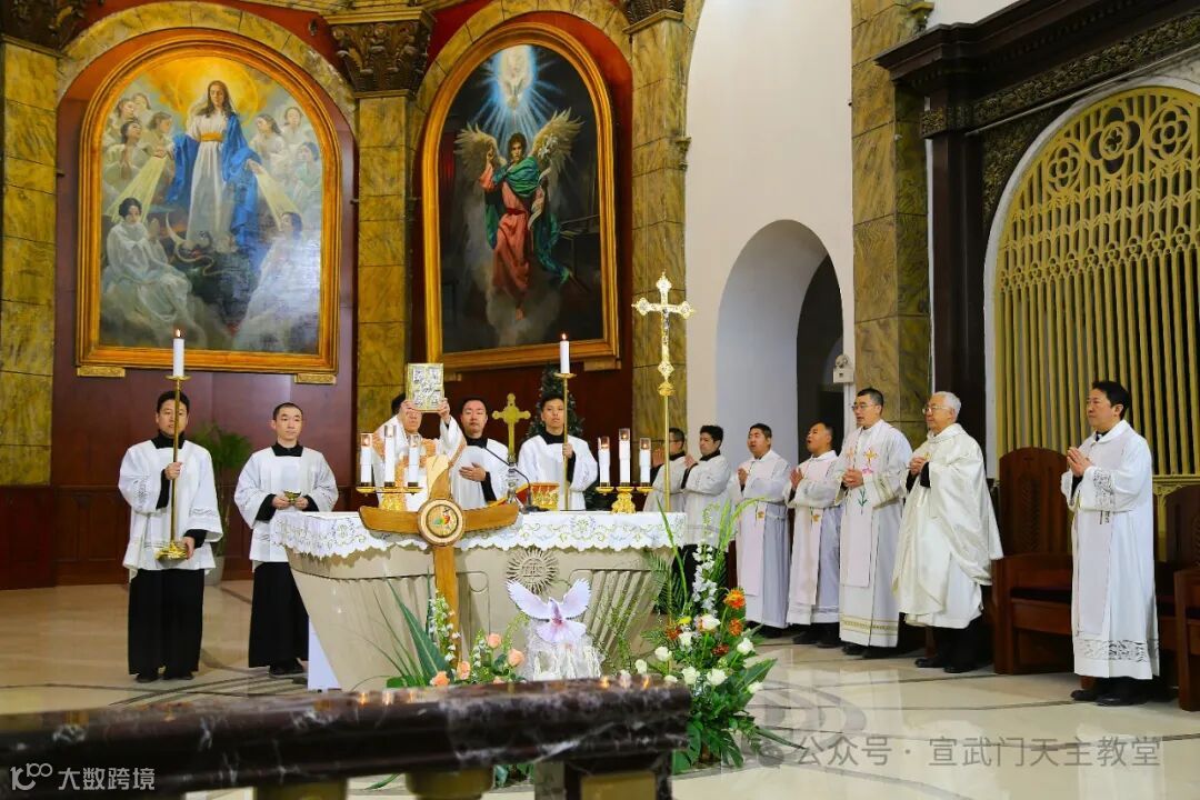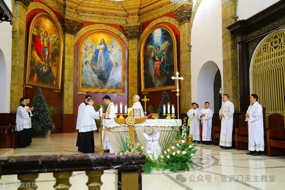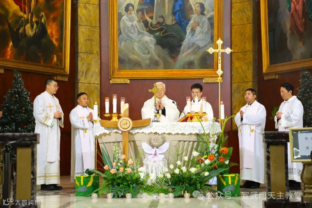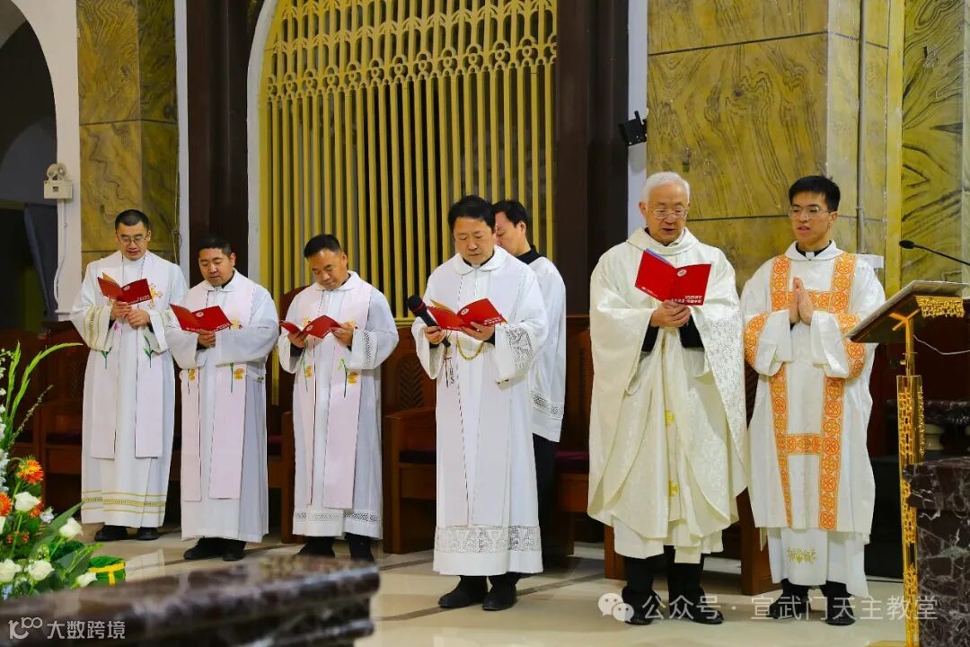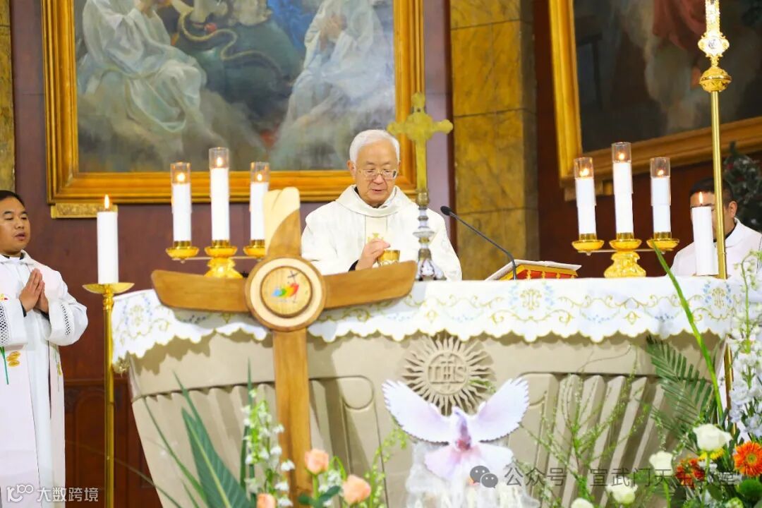 在庄严肃穆的仪式中,感恩祭由赵建敏神父主祭,教务委员会秘书长朱杰神父、南堂本堂张洪波神父,以及两位来自