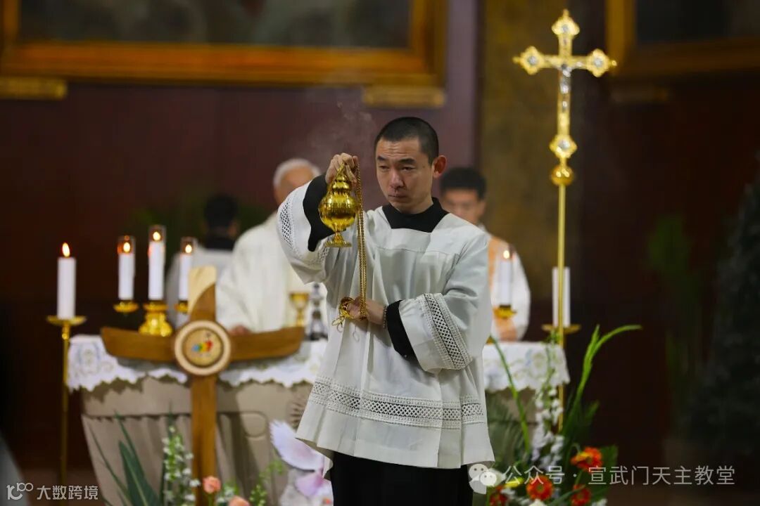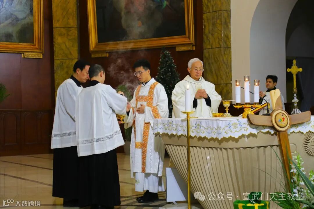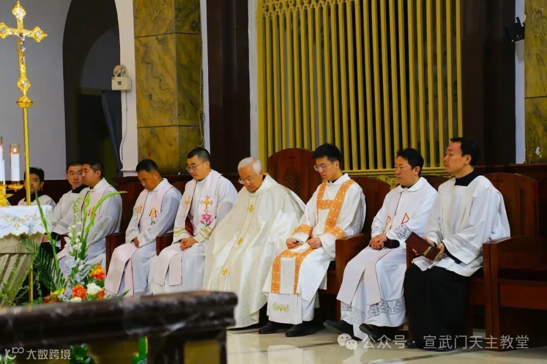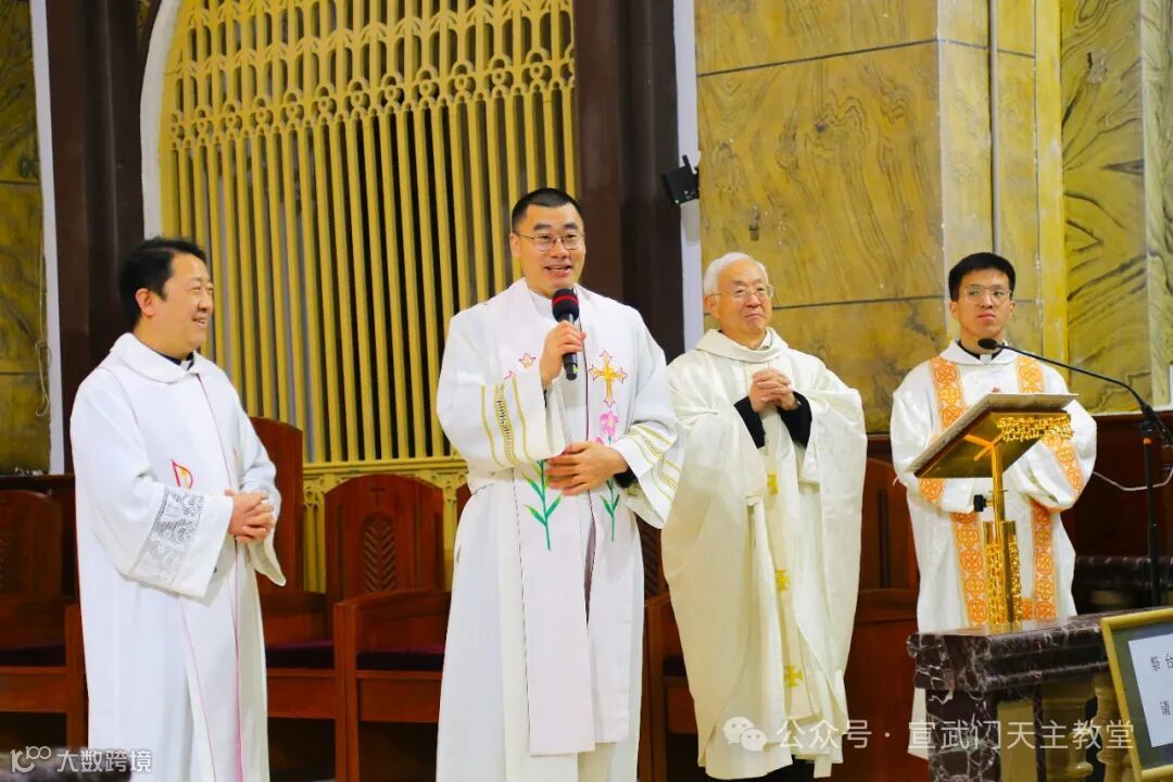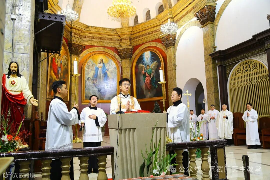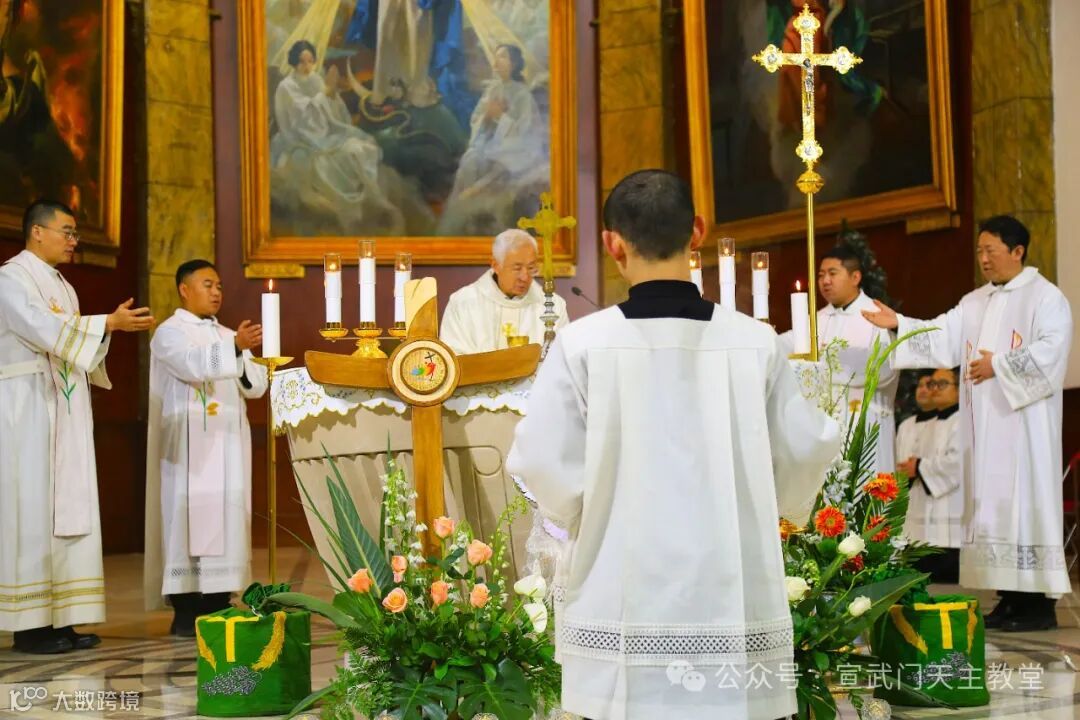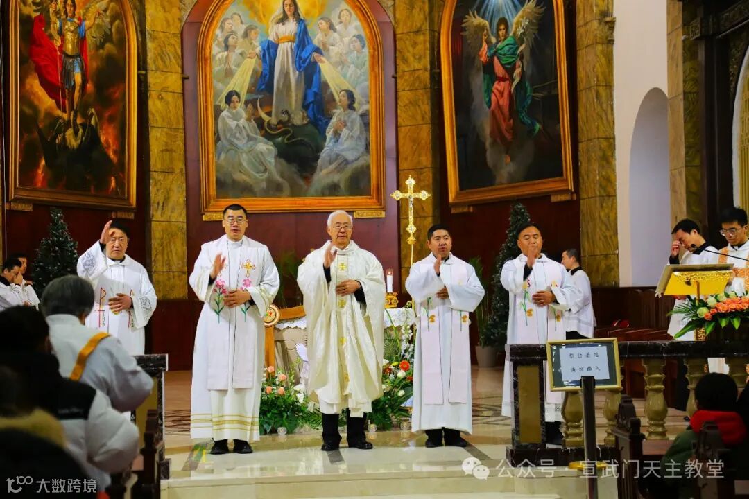 在庄严肃穆的仪式中,感恩祭由赵建敏神父主祭,教务委员会秘书长朱杰神父、南堂本堂张洪波神父,以及两位来自