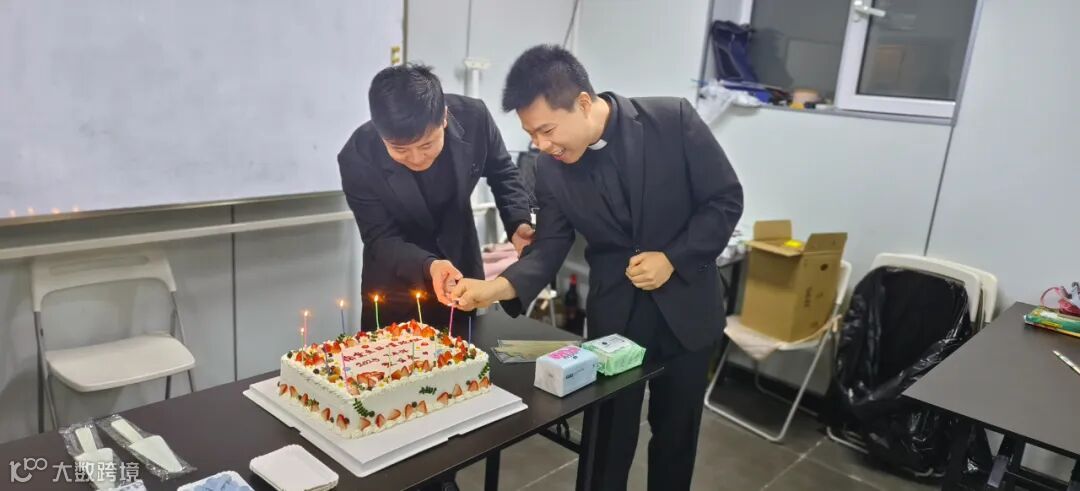 随后,神父们共同点燃了象征生命与希望的蜡烛,柔和的光晕映照在蛋糕上,也映照在我们每个人洋溢的笑脸上。