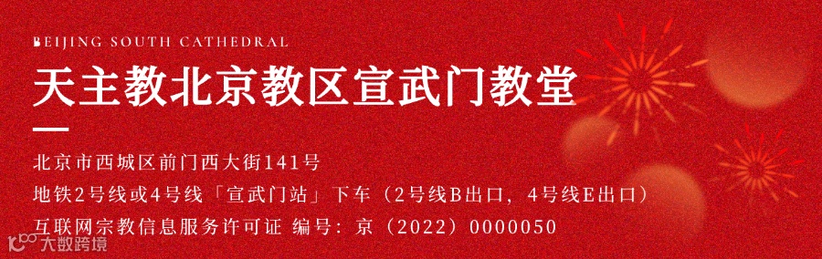 旧岁已展千重锦,新年再进百尺竿。在这温馨美好的除夕之日,北京南堂全体神长教友,恭祝大家除夕安康、新春大吉!愿天主的平安临于每一个家庭,愿团圆的喜悦常驻每一颗心灵,愿新的一年里,我们始终心怀信仰、坚守善良,在主爱中携手同行,共赴美好新程。