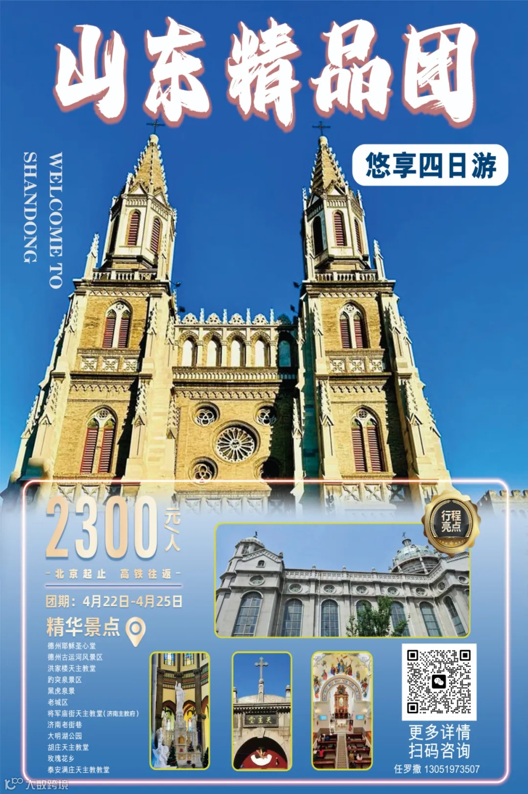亲爱的教友们,堂区山东悠享四日游,正在报名中。欢迎大家咨询报名,详情见下图。