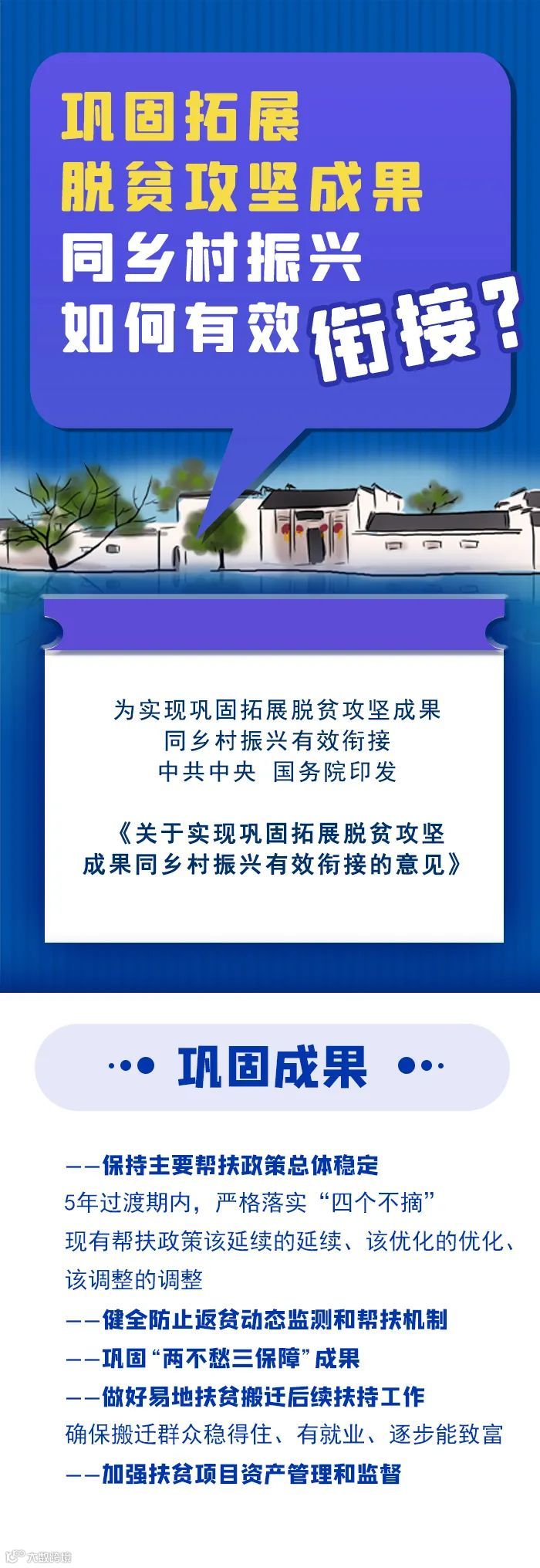 ◇ 围绕巩固脱贫成效的目标任务,做好保障制度、发展机制和文明建设的战略衔接,为解决相对贫困探索经验,为乡村振兴打好基础;