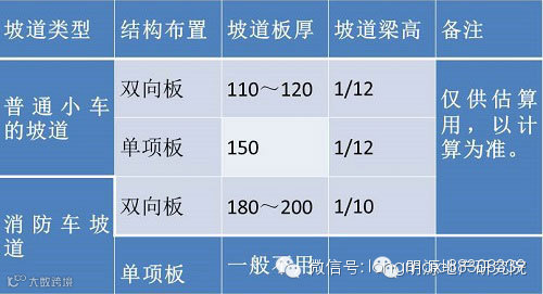 曲线坡道:一般单车道宽4米,防火疏散用双车道宽7米。