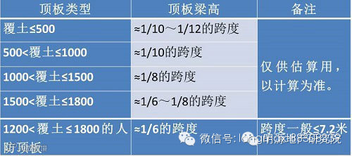 (1)顶板厚度:顶板厚度和顶板所处的位置、顶板的覆土、跨度等有关。
