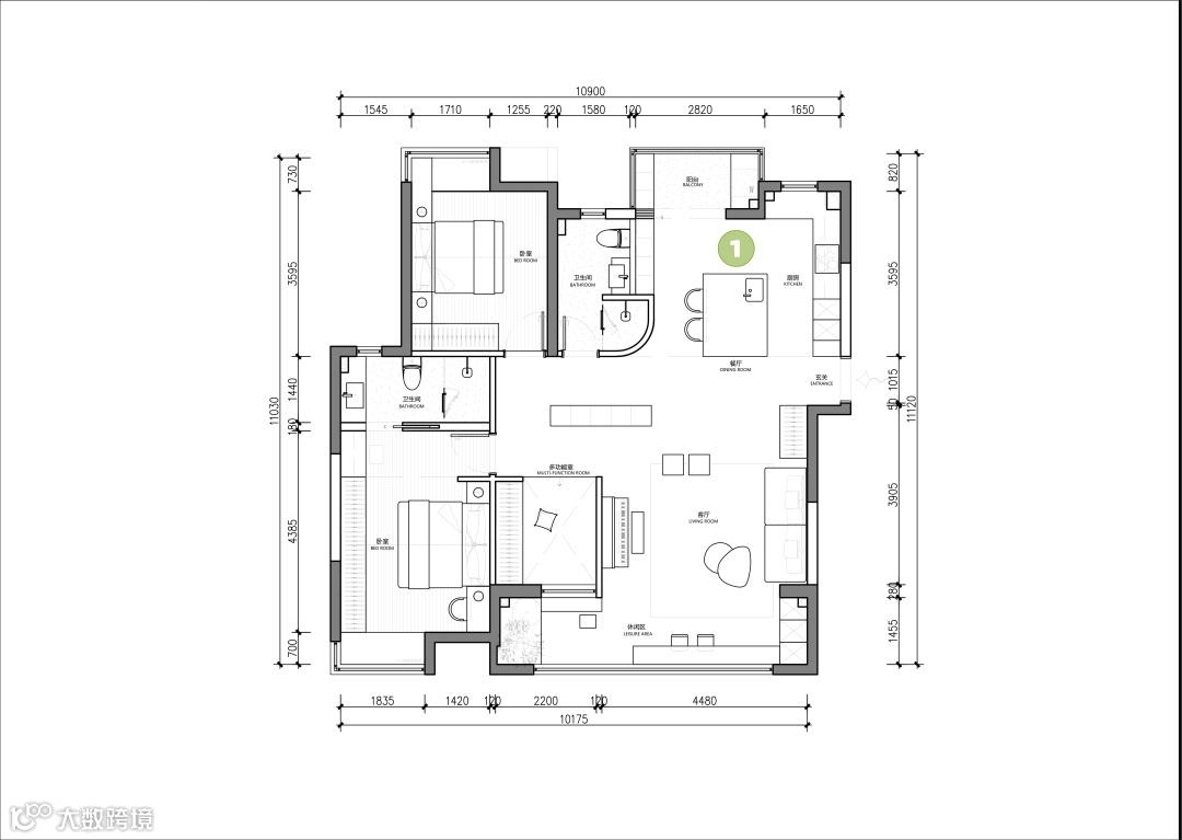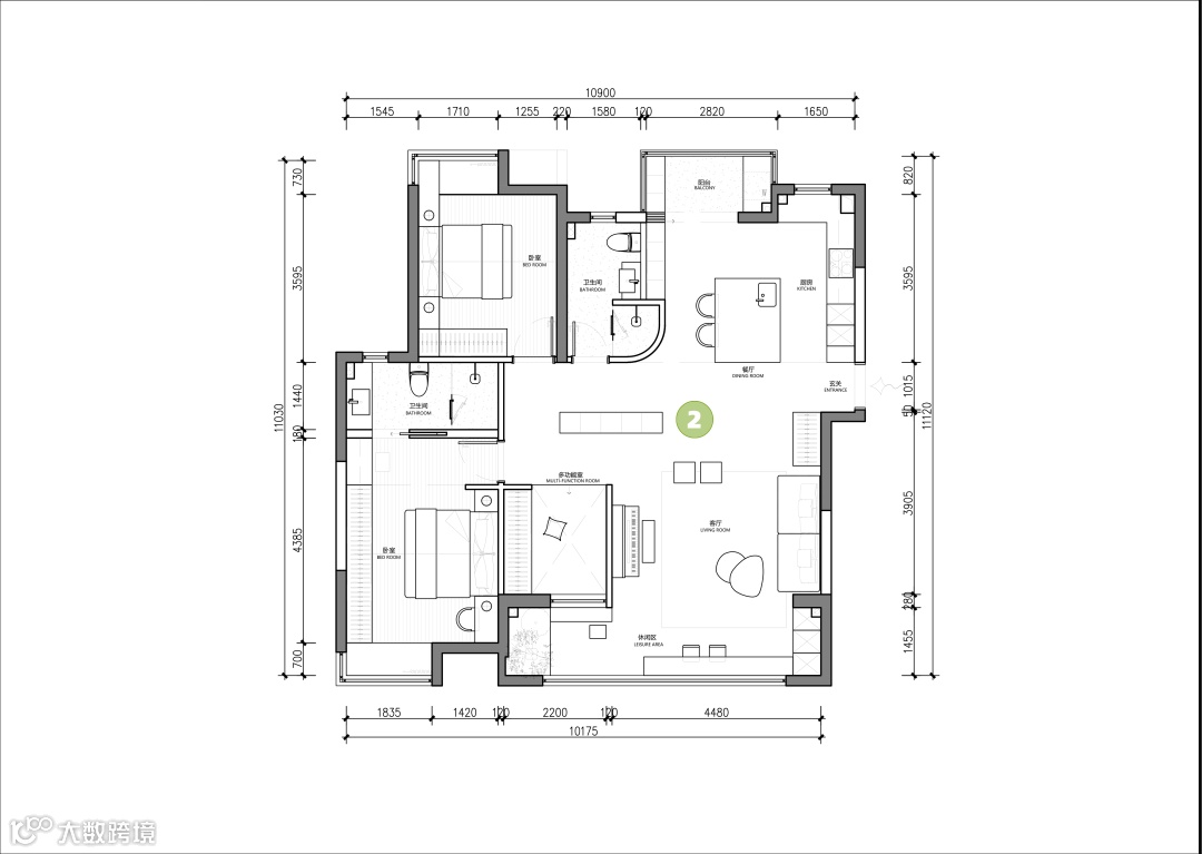 剖析2▶双阳台利用穿插于卧室及客厅,房间私密性较低。