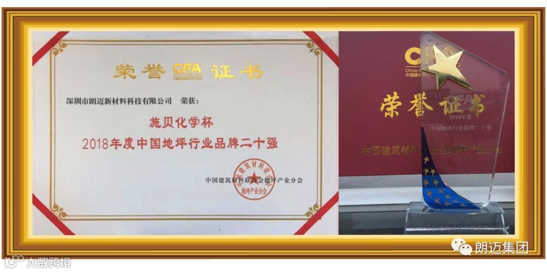 2018年12月2日,在2018年度中国建筑材料联合会地坪产业分会年会上,朗迈公司在来自全国各地的数百家企业中脱颖而出,荣获“2018年度中国地坪企业品牌二十强”称号。获此殊荣,是业界专业机构对朗迈公司实力及成绩的嘉许与肯定。