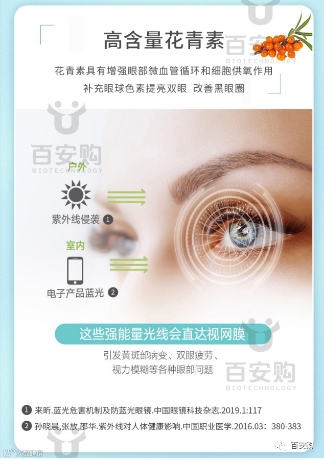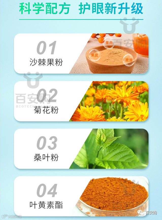 百安健沙棘叶黄素,纯植物提取的沙棘果粉、菊花粉、桑叶粉、叶黄素酯科学配比,护眼新配方。