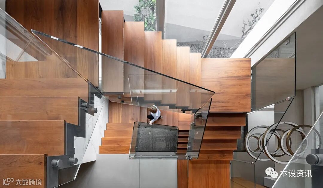 At night, embedded lights are used as universal LIGHT source, and lighting styles are strictly selected according to space attributes. A LIGHT RING chandelier from Henge, an Italian boutique furniture brand, is arranged in the stairwell, with staggered RING elements of pendant type to string horizontal and vertical dimensions and embellish space expression.