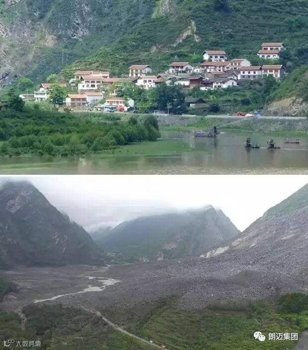 (四川新磨村被埋前后对比)