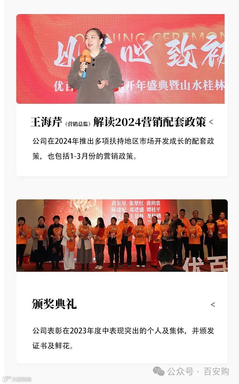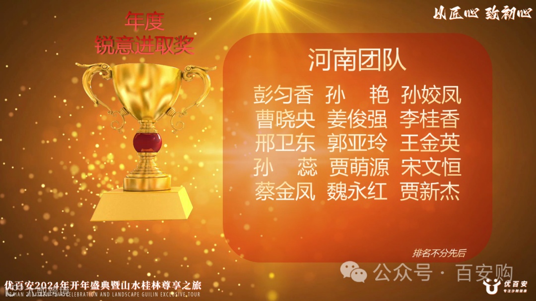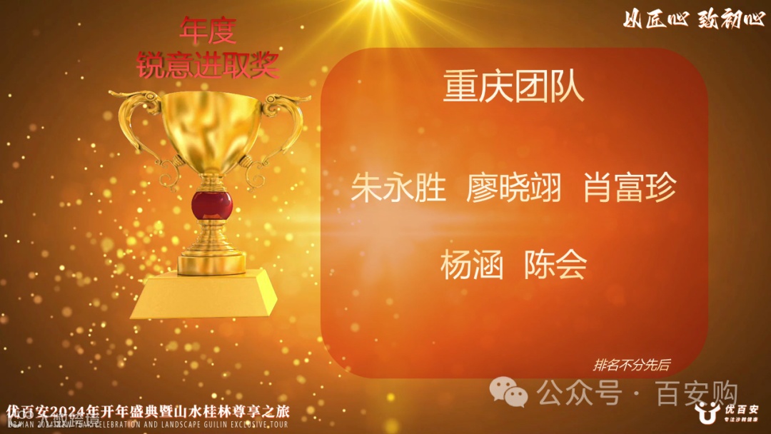 匠心,是优百安的灵魂,也是我们不断前行的动力。在每一个细节中,我们追求卓越,力求完美。无论是设计、研发、生产还是服务,我们始终坚持精益求精,以匠心独运的精神打造每一个产品。正是这种执着和坚持,使优百安在行业中脱颖而出,成为佼佼者。2024年1月6日-10日优百安开年盛典暨山水桂林尊享之旅正式拉开帷幕。