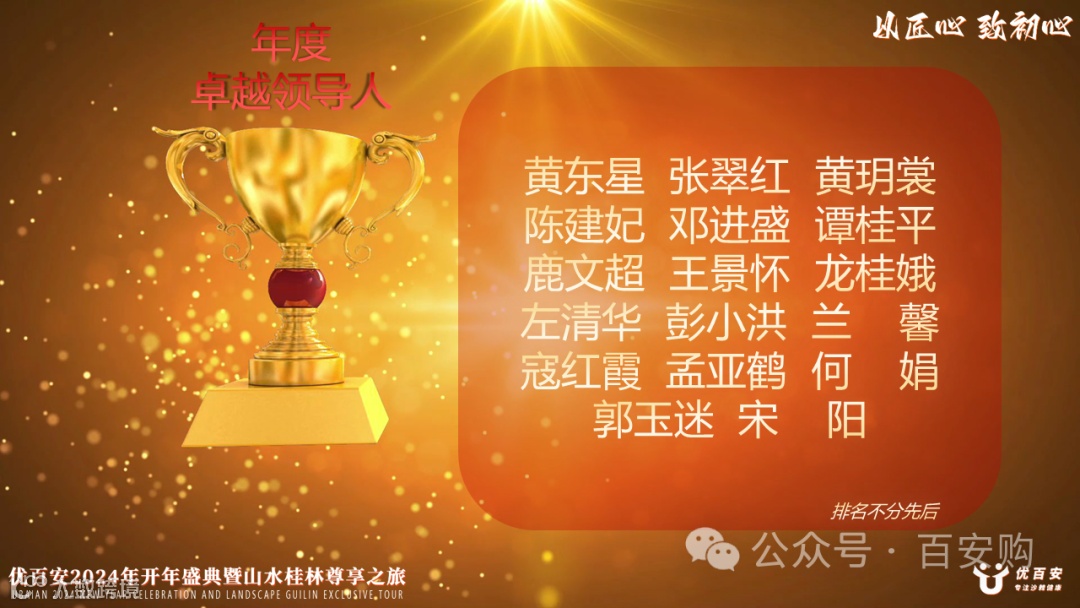 优百安2024盛典不仅是对过去一年成绩的总结和展示,更是对未来发展的期许和展望。我们将继续秉承“匠心独运”和“初心不改”的理念,砥砺前行。