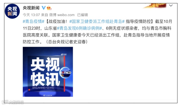 青岛疫情的爆发防不胜防,10月11日,青岛市发现3例新冠肺炎无症状感染者后,立即组织开展大规模的流调排查,截至10月11日23时,青岛共发现6例确诊病例、6例无症状感染者。
