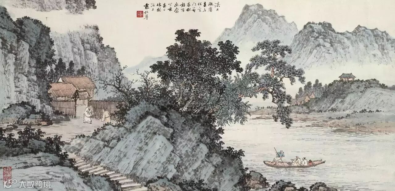 疎籬旁插水涓涓,數樹桃花隱屋緣。