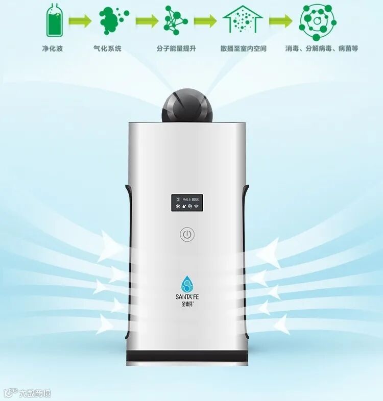 当这些液体置入空气净化器后,经过超声波雾化片雾化至空气中,活跃的分子能量主动捕捉空气中的细菌、病毒和甲醛等污染物。