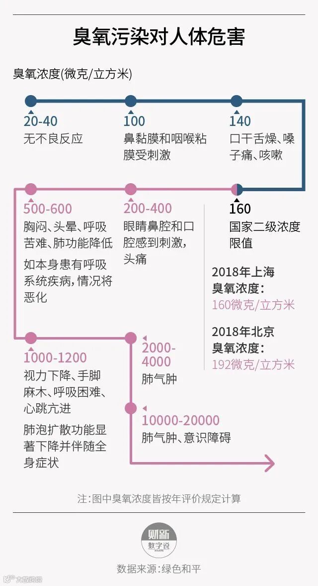 而且,在近几年,臭氧由于全球变暖、人为污染排放等原因,平均每年上升1微克左右。