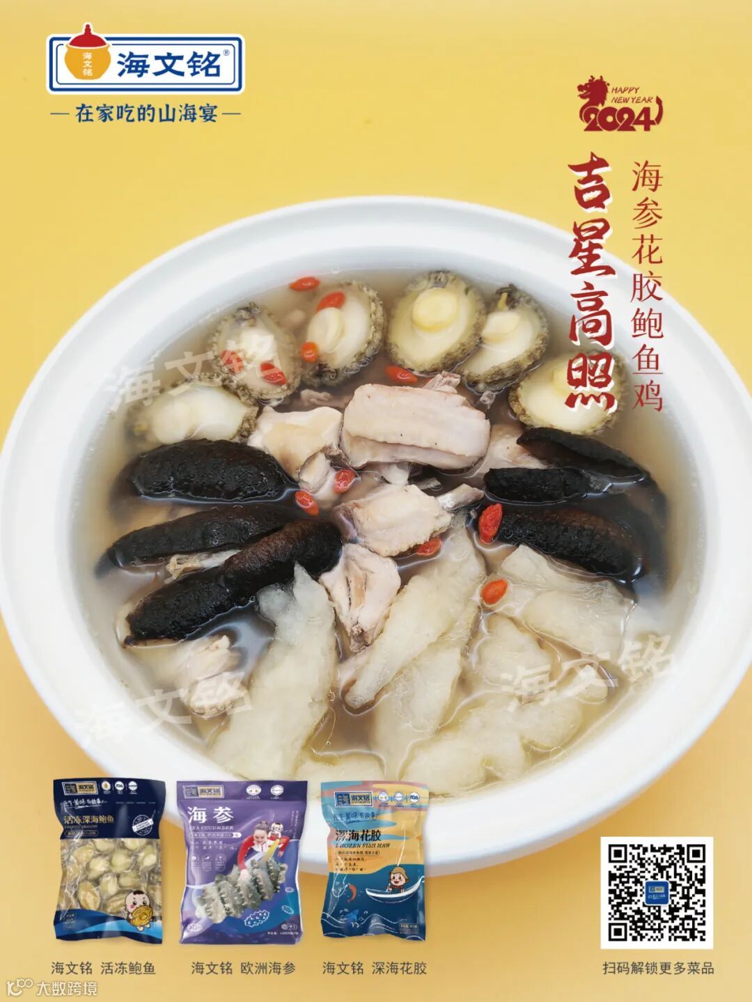 菜品特点:来自国家地理标志平潭的鲍鱼Q弹鲜甜,搭配欧洲野捕的海参、深海花胶、走地鸡,满满一锅滋补养颜。