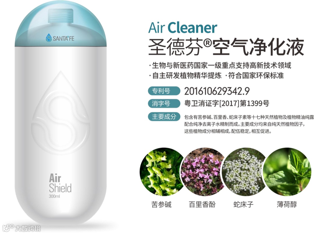【主动净化】模式的核心是雾化到空气中,萃取十七种天然植物精华精制而成的【空气净化液】: