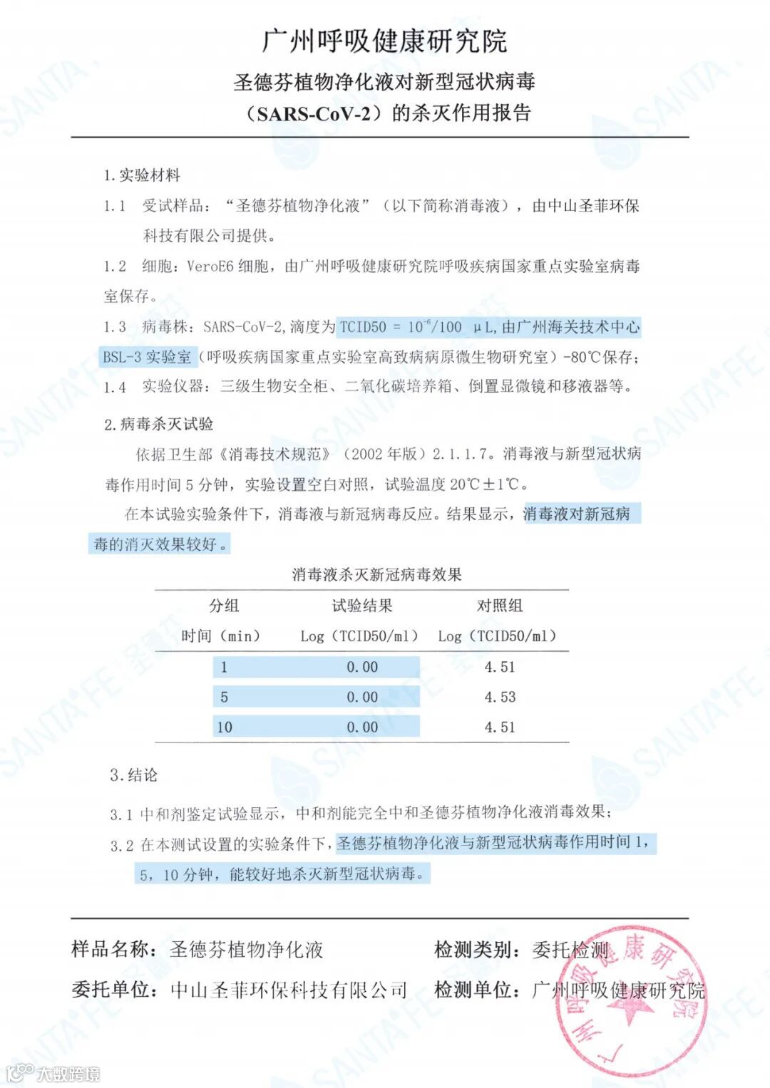·经过广州呼吸研究院测试,能够较好地杀灭新型冠状病毒