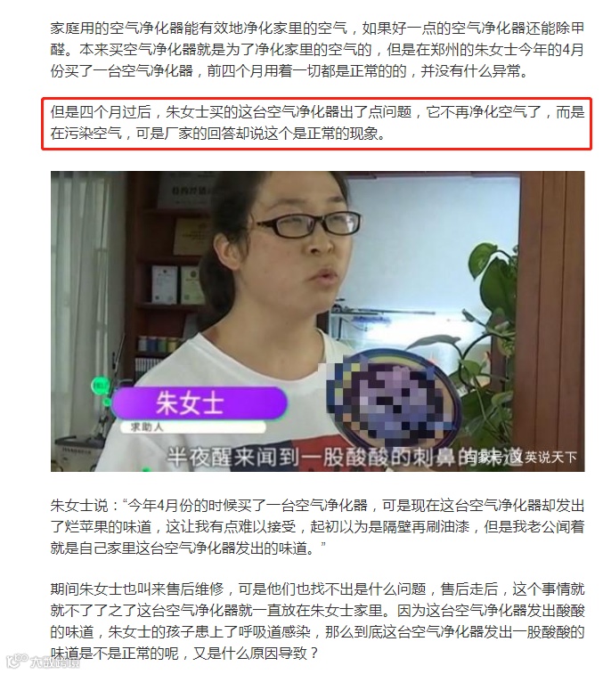 新闻也出现过相关案列:郑州的一位女士,买了一台空气净化器才四个月的时间,居然就出现了难闻的酸味。净化器摇身一变,成为空气散毒器!