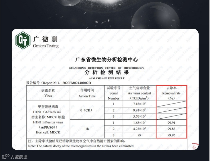 H3N2流感,禽流感:H9N2、H7N3、H6N2等等!去除率同样高达99.99%。