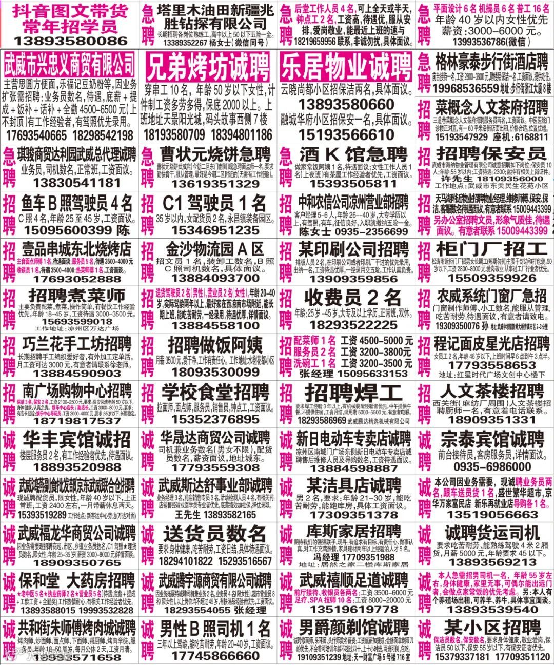 武威红柳广告和武威视觉传媒有限公司倾力打造武威本地网上生活平台,给您更好的本地资讯。招聘、求职、出租、转让、二手交易等便民信息查找、发布,商家优惠,吃喝玩乐购全都有。