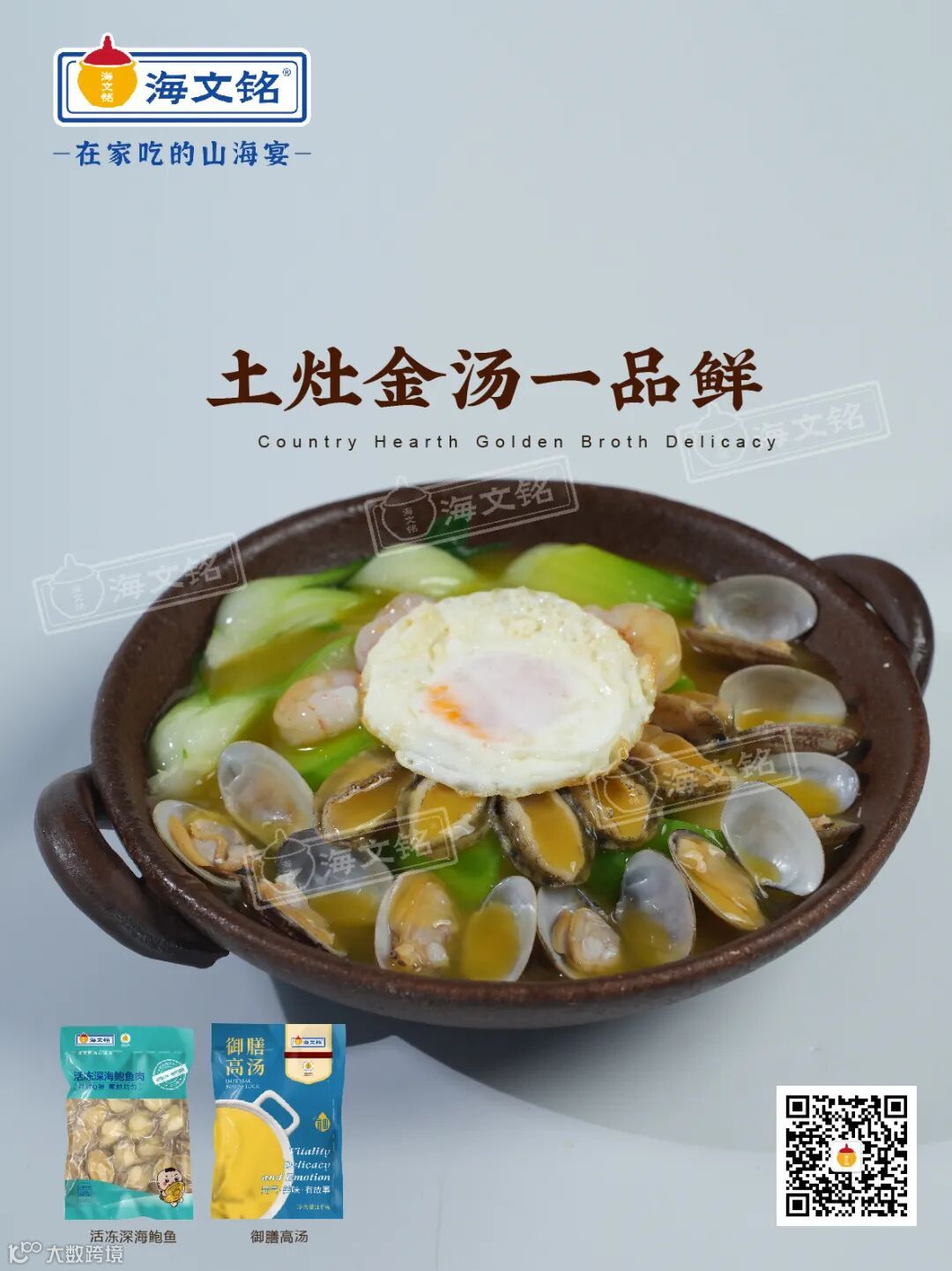 海文铭活冻深海鲍鱼肉、御膳高汤、虾仁、花蛤、鸡蛋、丝瓜、盐、上海青