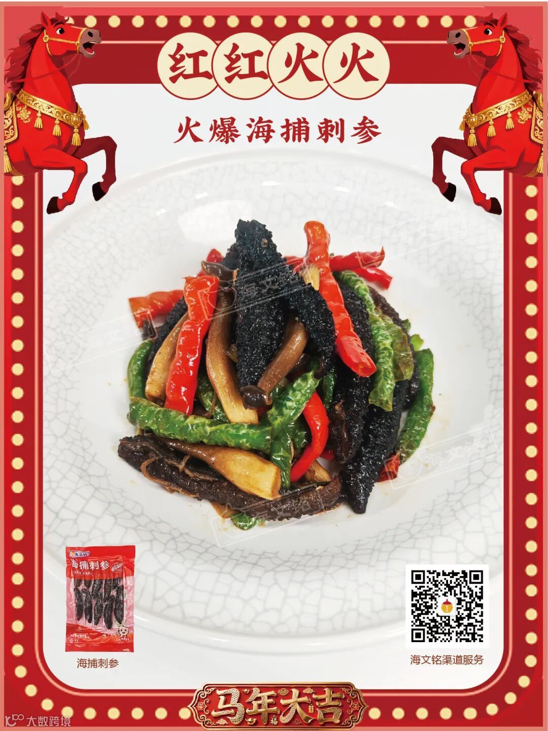 海文铭海捕刺参、鸡肠椒、蒜片、辣椒干、蚝油、鸡粉、味极鲜、生粉、油