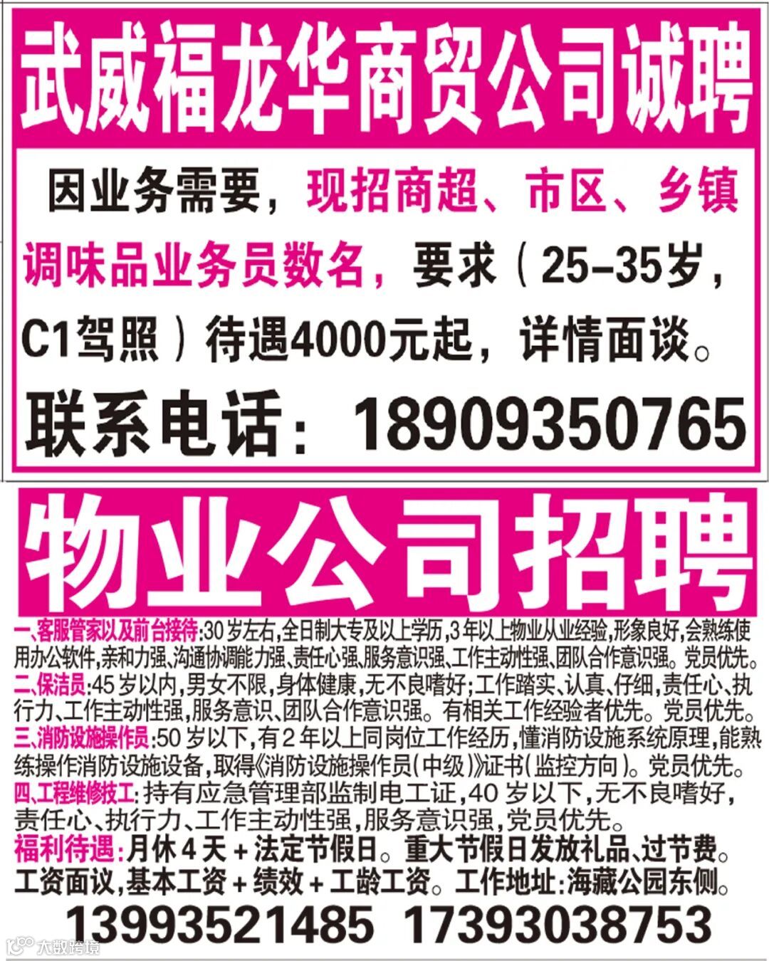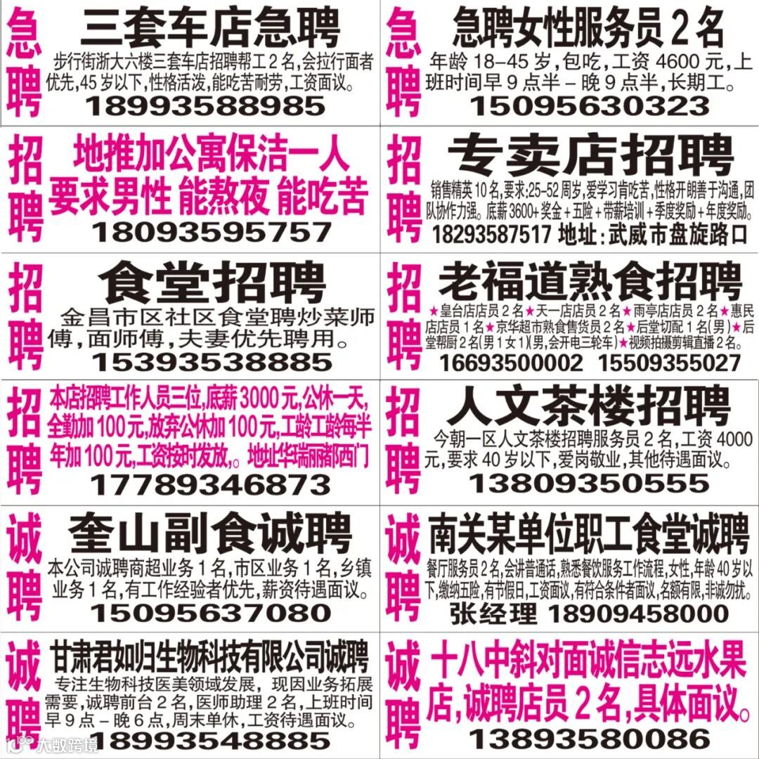 武威红柳广告和武威视觉传媒有限公司倾力打造武威本地网上生活平台,给您更好的本地资讯。招聘、求职、出租、转让、二手交易等便民信息查找、发布,商家优惠,吃喝玩乐购全都有。