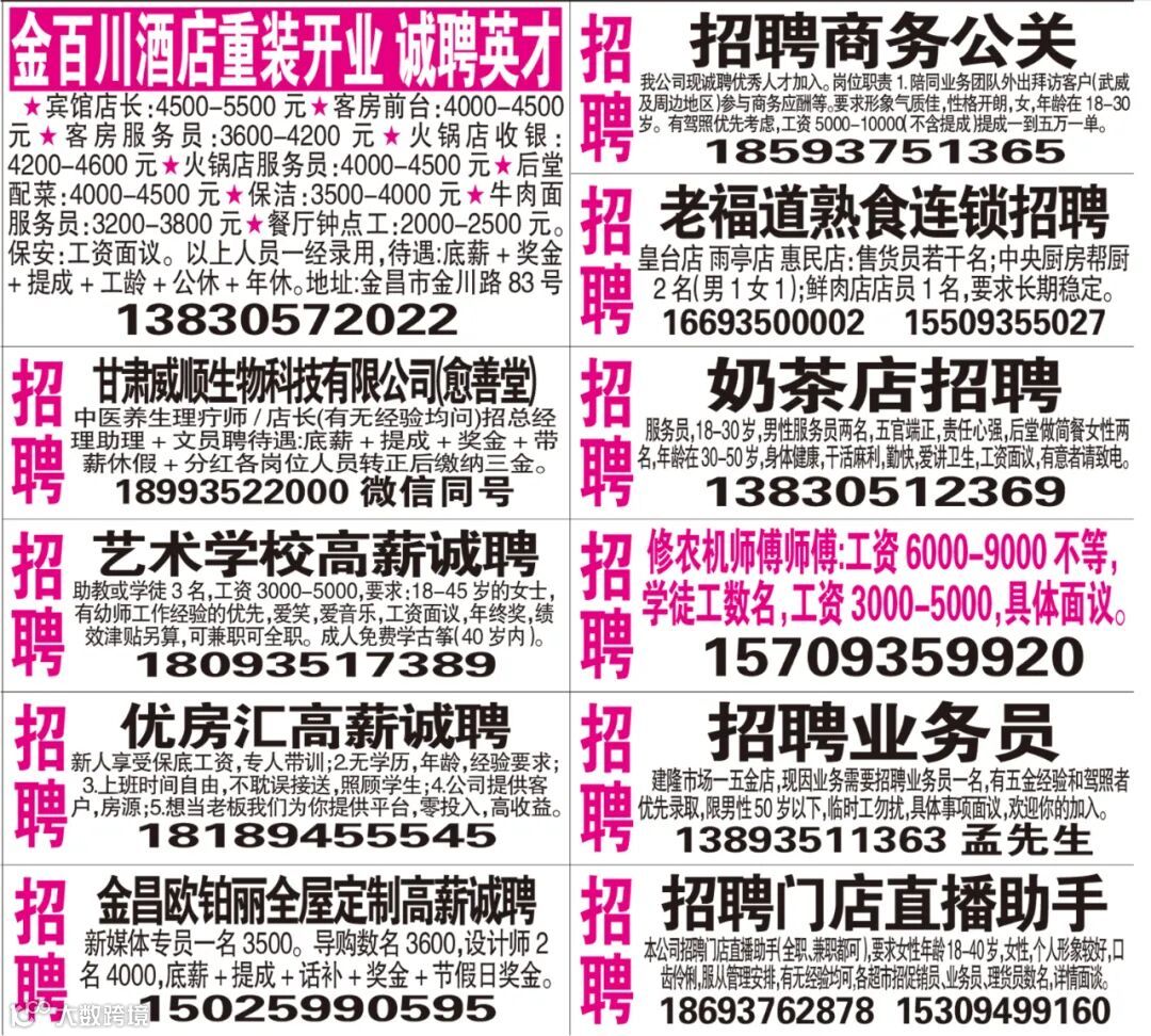 武威红柳广告和武威视觉传媒有限公司倾力打造武威本地网上生活平台,给您更好的本地资讯。招聘、求职、出租、转让、二手交易等便民信息查找、发布,商家优惠,吃喝玩乐购全都有。
