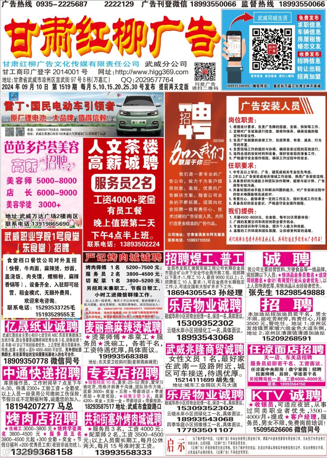 武威红柳广告电子报刊 ( 1519期)2024年09月10日