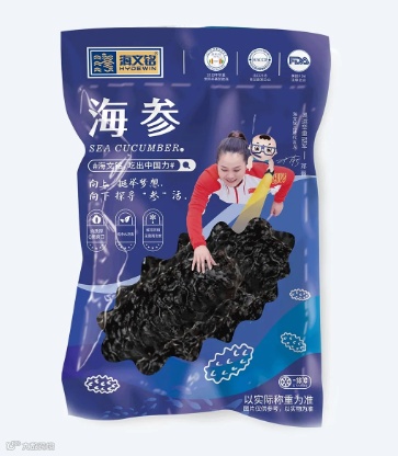 在小米浓汤上,放上烫好的海参,摆盘上桌