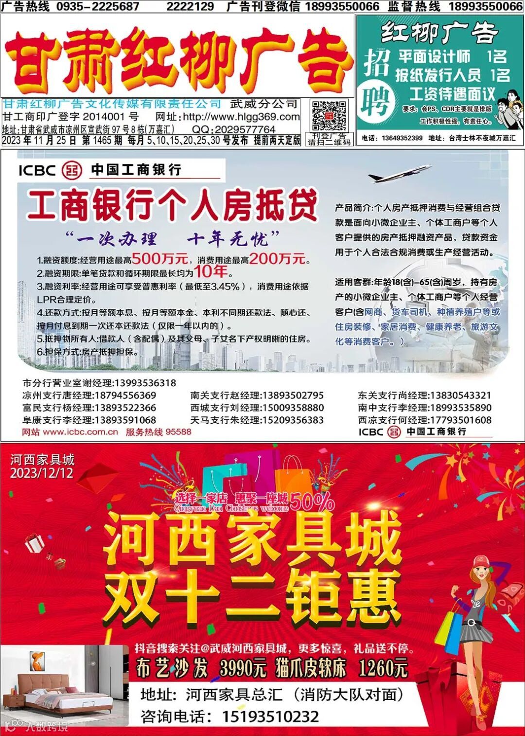 红柳广告DM报纸一周信息速递(1463期 1464期 1465期)2023年11月25日