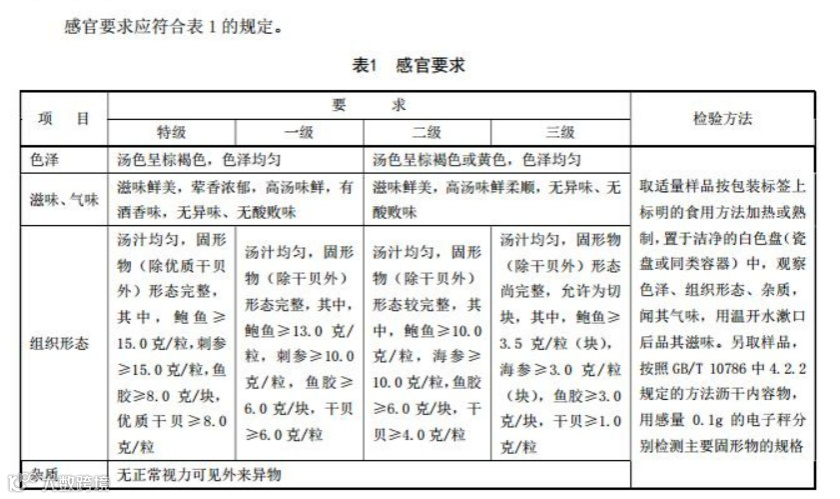 根据《佛跳墙》食品安全地方标准规定,一份佛跳墙之所以能称得上佛跳墙,鲍鱼、海参、鱼胶、干贝是必备的主材。主材的大小和品质,决定着佛跳墙的等级高低。
