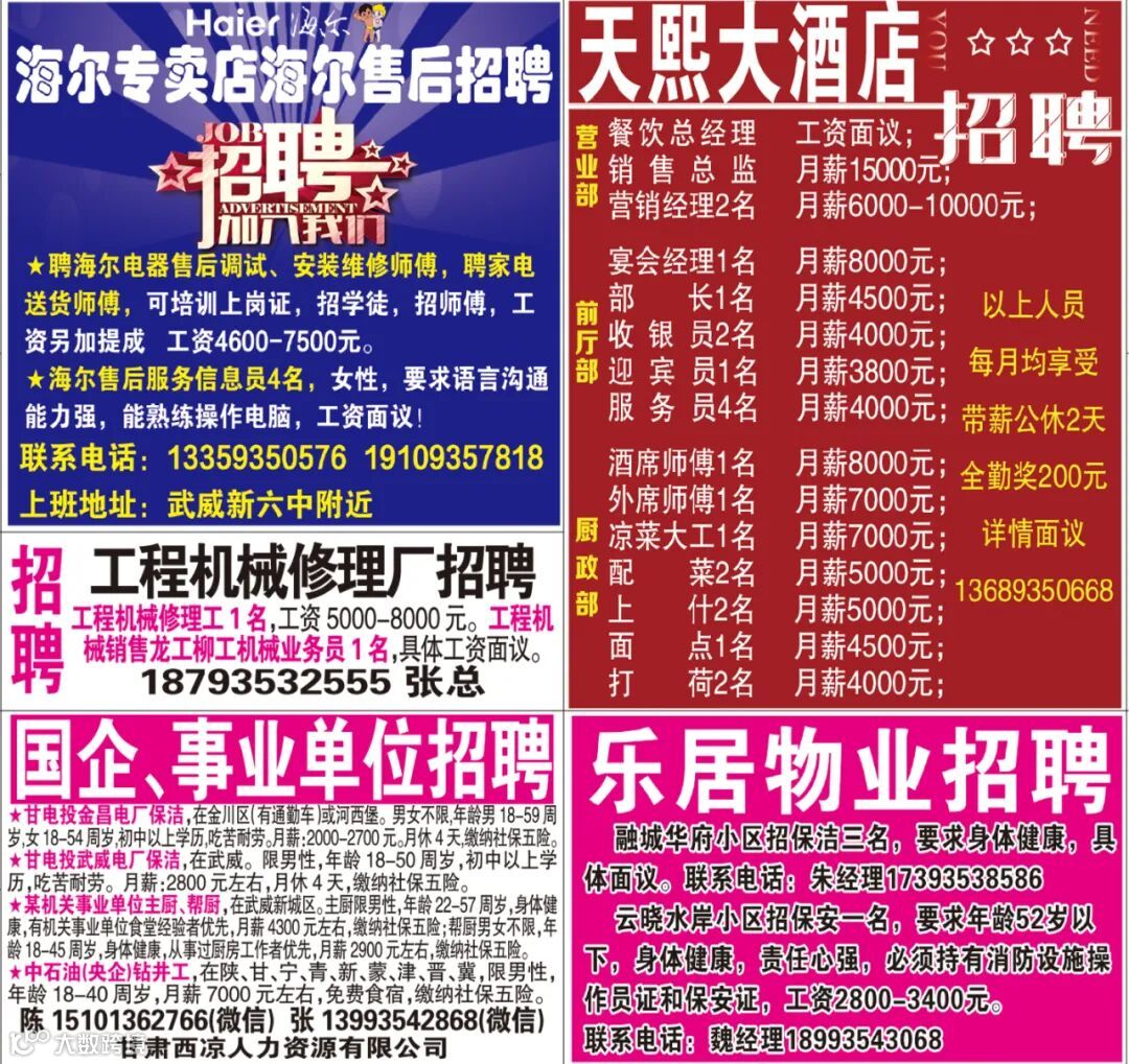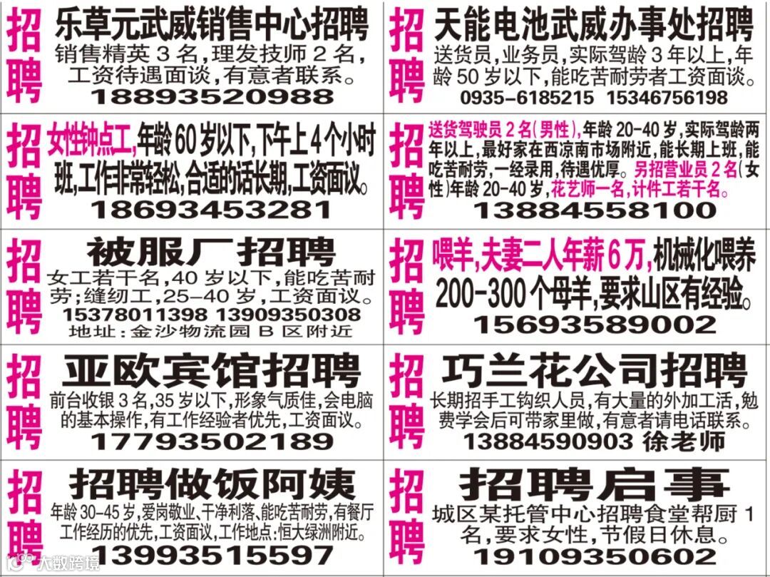 武威红柳广告和武威视觉传媒有限公司倾力打造武威本地网上生活平台,给您更好的本地资讯。招聘、求职、出租、转让、二手交易等便民信息查找、发布,商家优惠,吃喝玩乐购全都有。