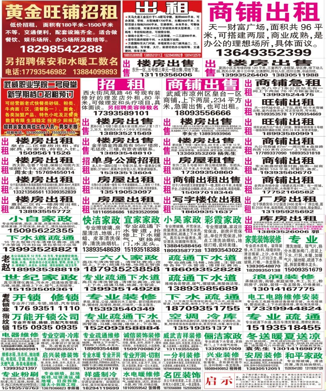 武威红柳广告和武威视觉传媒有限公司倾力打造武威本地网上生活平台,给您更好的本地资讯。招聘、求职、出租、转让、二手交易等便民信息查找、发布,商家优惠,吃喝玩乐购全都有。