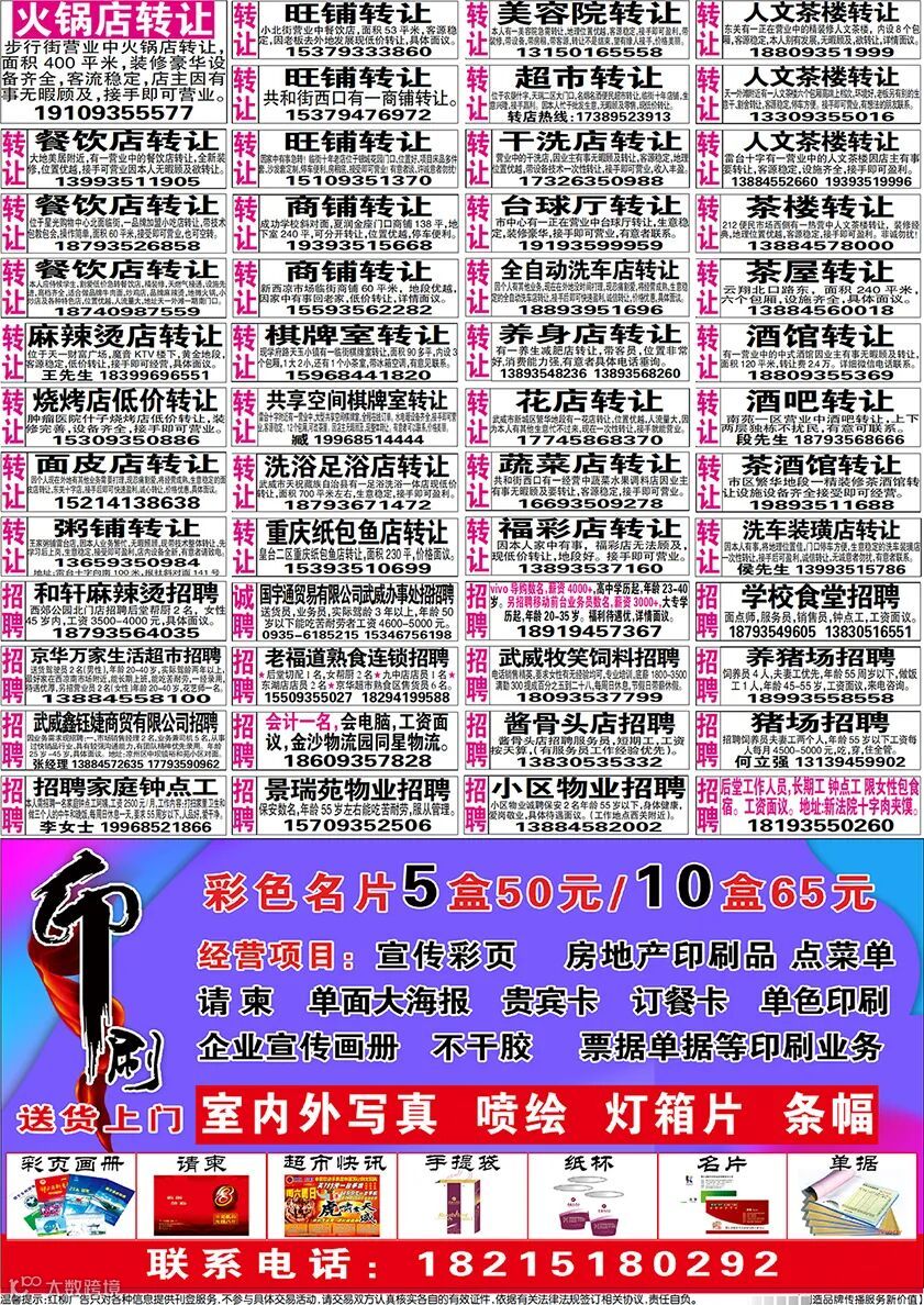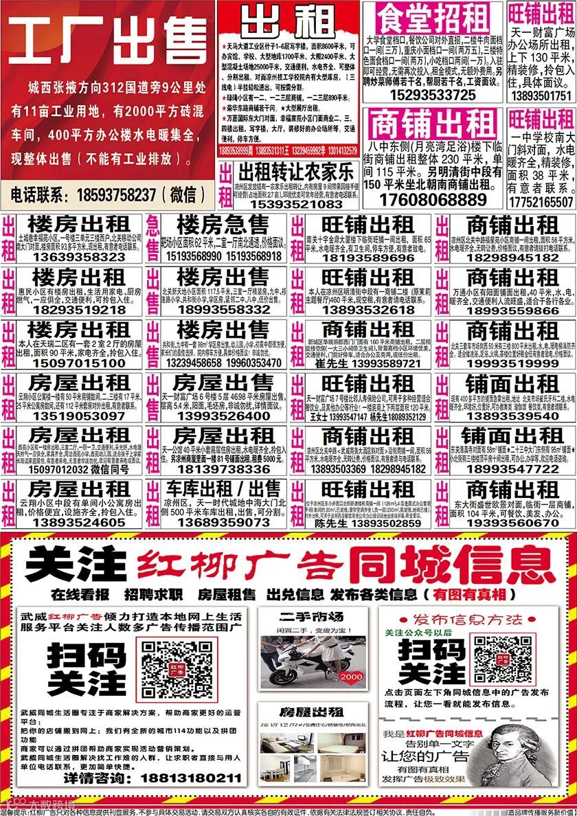 武威红柳广告和武威视觉传媒有限公司倾力打造武威本地网上生活平台,给您更好的本地资讯。招聘、求职、出租、转让、二手交易等便民信息查找、发布,商家优惠,吃喝玩乐购全都有。