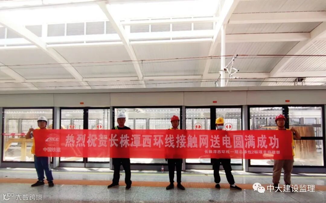 2022年9月14日,由长沙中大建设监理有限公司监理的长株潭城际轨道交通西环线一期工程供电系统成功贯通。这是继全线“洞通”、全线“轨通”后的又一个重要关键节点——全线“电通”,为后续全线热滑、全线进行联调联试创造了条件,为西环线试运行打下了坚实的基础。