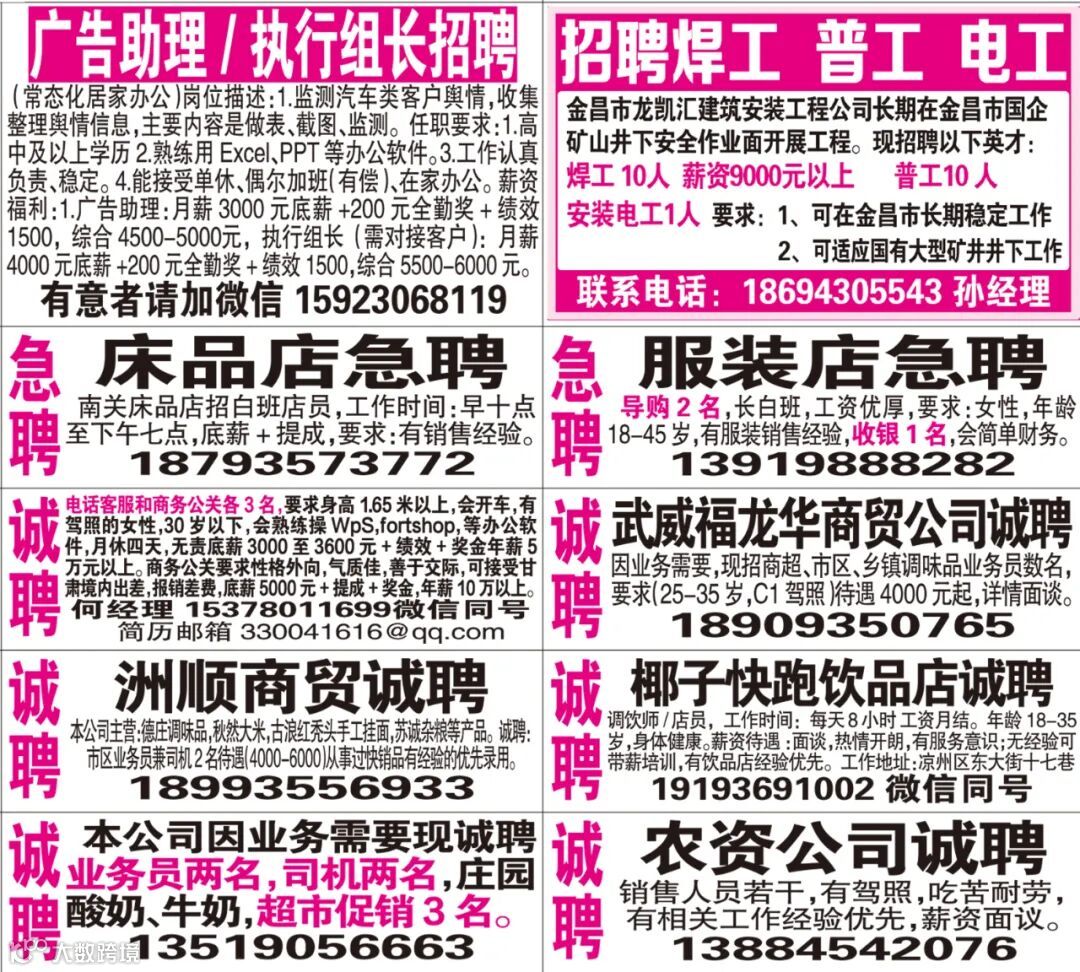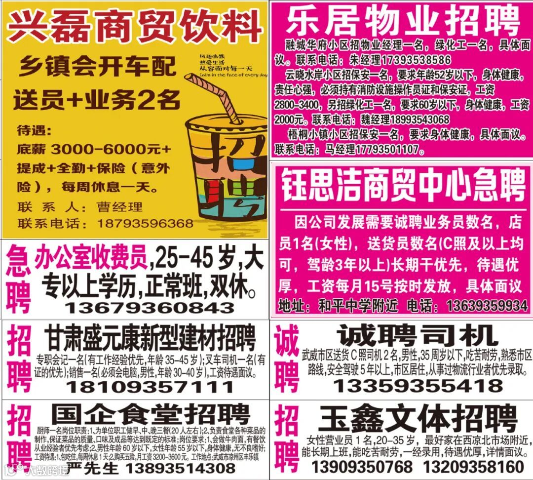 武威红柳广告和武威视觉传媒有限公司倾力打造武威本地网上生活平台,给您更好的本地资讯。招聘、求职、出租、转让、二手交易等便民信息查找、发布,商家优惠,吃喝玩乐购全都有。