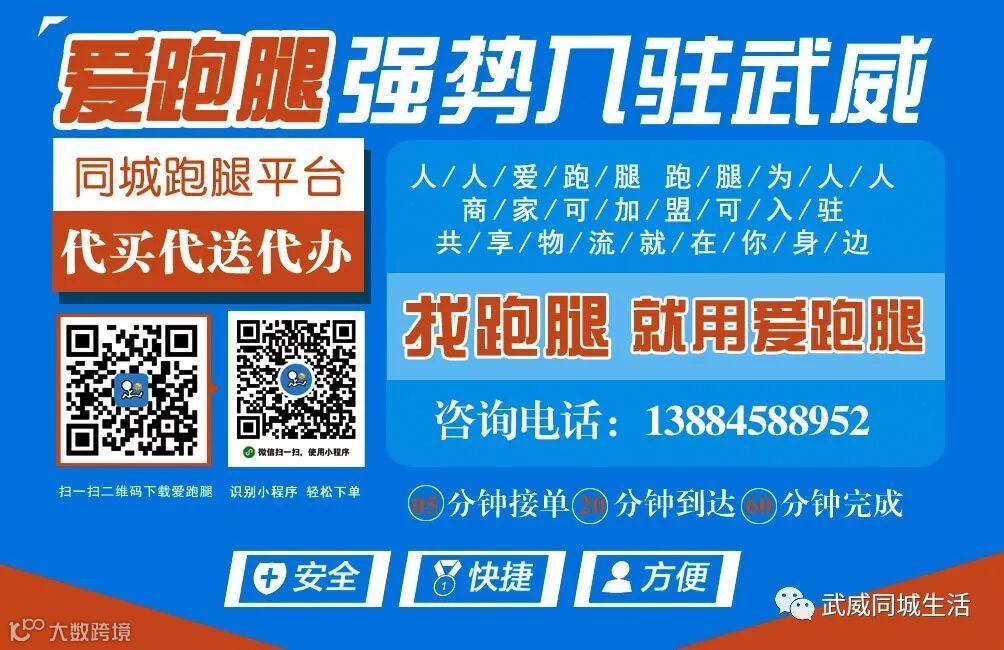 爱跑腿正式入驻武威、欢迎各位商家洽谈入驻、