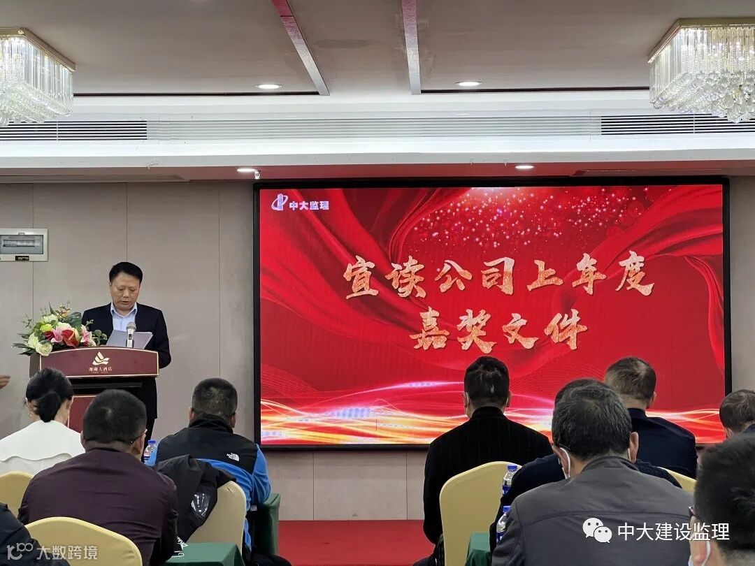 会议由总经理王飞龙主持,3月12日上午会议开始,副总经理李志成宣读了公司上年度嘉奖文件,表彰了2021年度先进集体、先进个人、优质工程奖等,并颁发了荣誉证书。