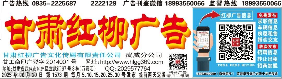 武威红柳广告电子报刊 ( 1573期)2025年06月30日