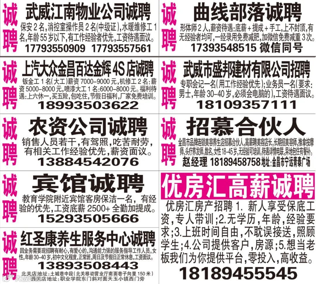 武威红柳广告和武威视觉传媒有限公司倾力打造武威本地网上生活平台,给您更好的本地资讯。招聘、求职、出租、转让、二手交易等便民信息查找、发布,商家优惠,吃喝玩乐购全都有。