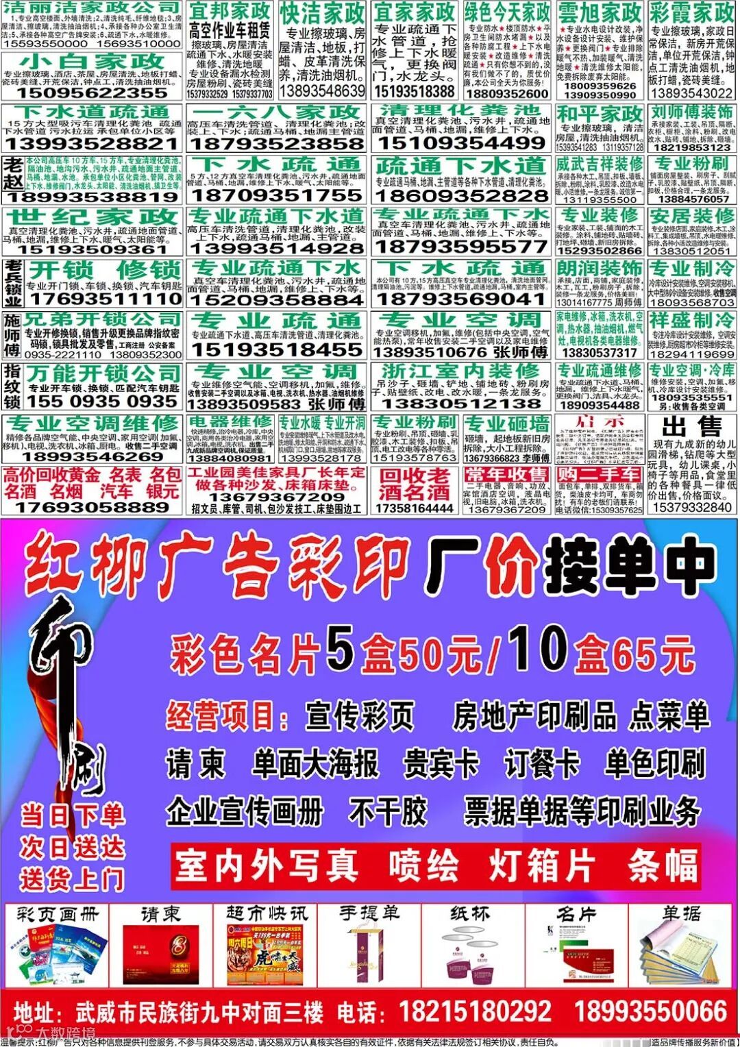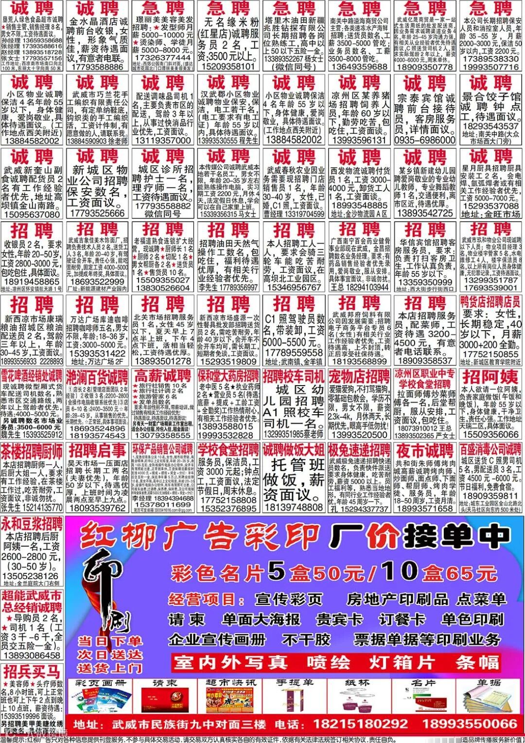 武威红柳广告和武威视觉传媒有限公司倾力打造武威本地网上生活平台,给您更好的本地资讯。招聘、求职、出租、转让、二手交易等便民信息查找、发布,商家优惠,吃喝玩乐购全都有。