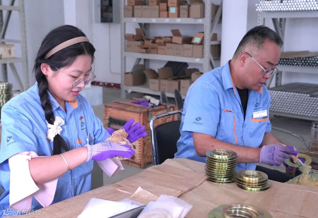 工房内,物料搬运声、包装摩擦声,交织成“攻坚交响曲”。包装人员分工明确、配合默契。拆分组成员聚精会神地分解着缠绕在一起卡簧长龙,装配组成员快速的把一件件卡簧组装到卡槽中,包装组成员指尖翻飞,熟练完成涂油、包纸、套袋的动作,封袋组成员左右不停的操作在封口机前,装箱组成员则认真的清点成品数量,并整齐码放在木箱内,为发货做好准备。在高强度的工作面前,大家团结协作、聚精会神,从上班到下班,专注的“钉”在包装台前,手上的动作丝毫不放松,只为抢时间、赶进度。