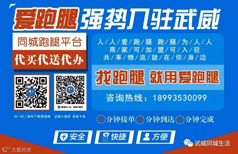 ☀ 定期推送武威同城活动,居家房产,热点资讯,商家优惠等诸多分类优质信息,武威最接地气、重服务的本地微信平台!关注我们妥妥没错!(广告热线:0935- 6964699)