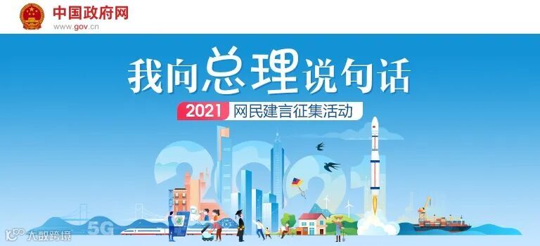 即日起至2021年全国两会期间,中国政府网(www.gov.cn)联合多家网络媒体平台,以及各省区市、相关部委政府网站开展“我向总理说句话”网民建言征集活动。