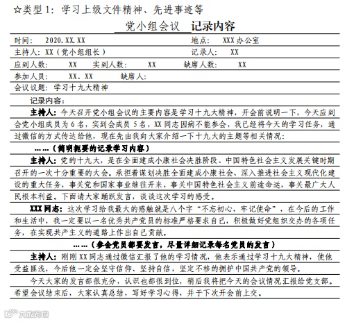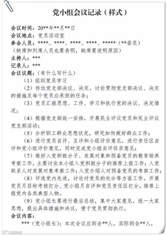 党小组会记录要求及样式