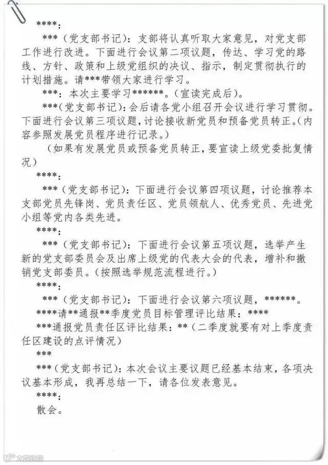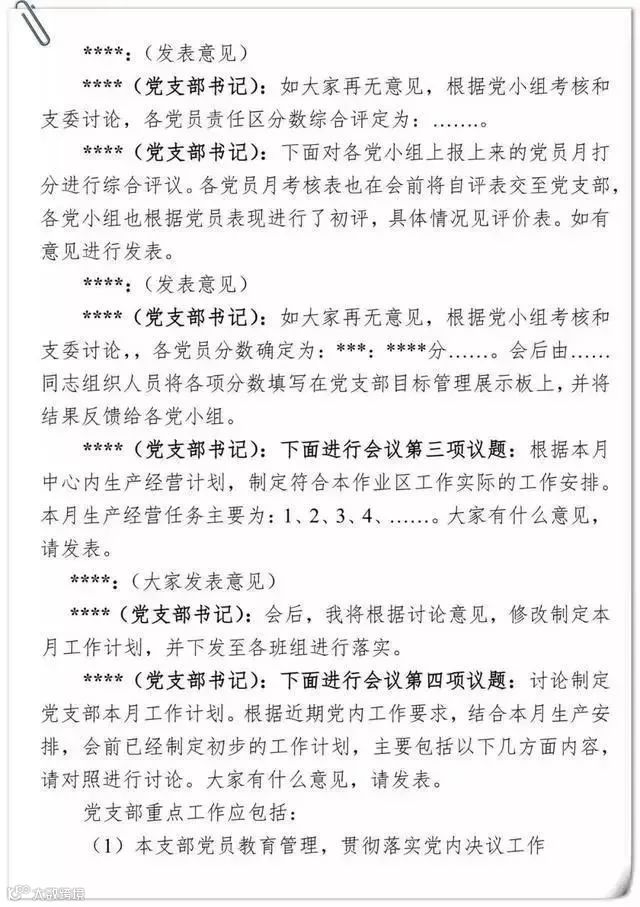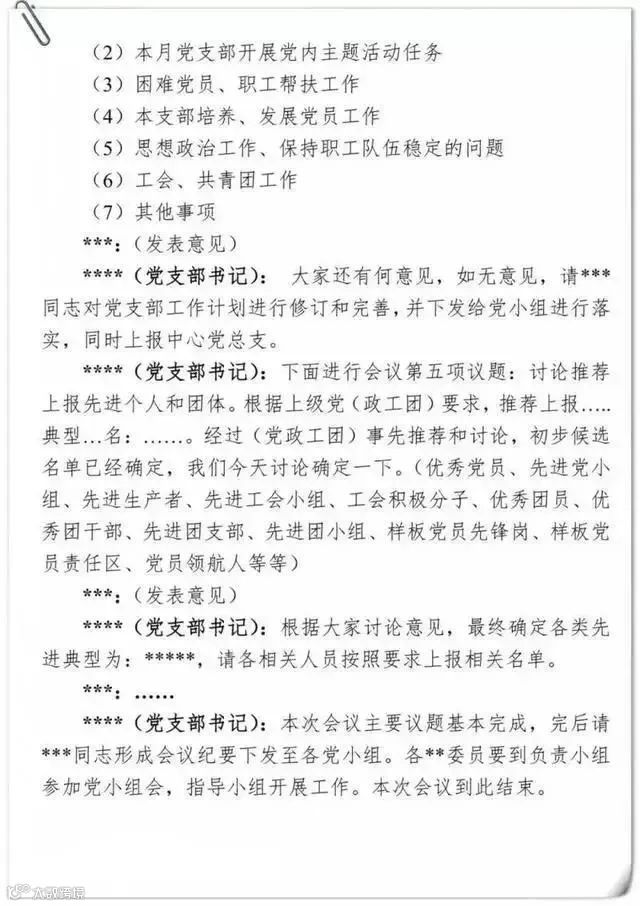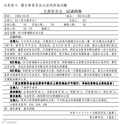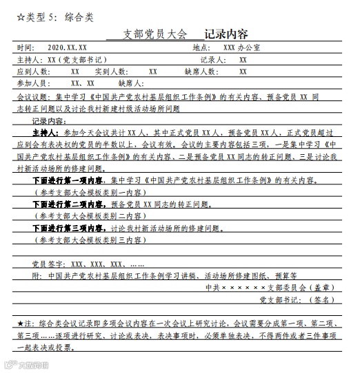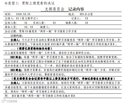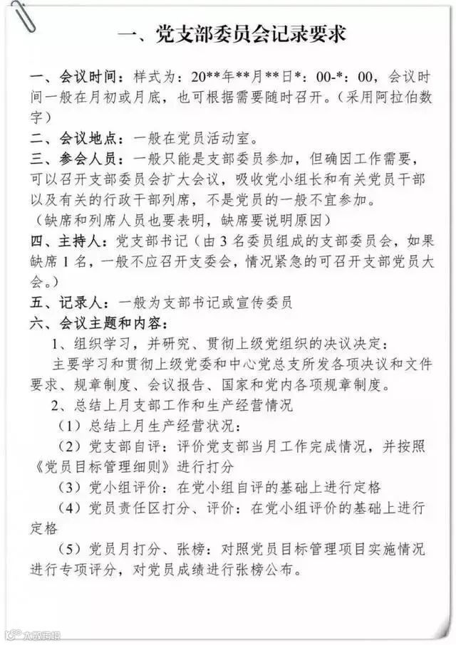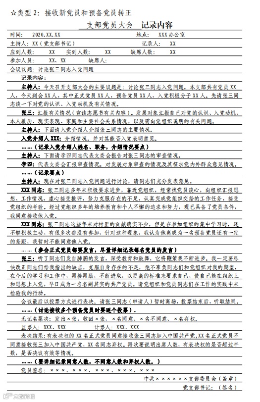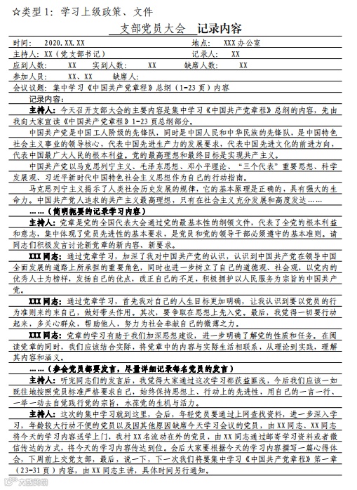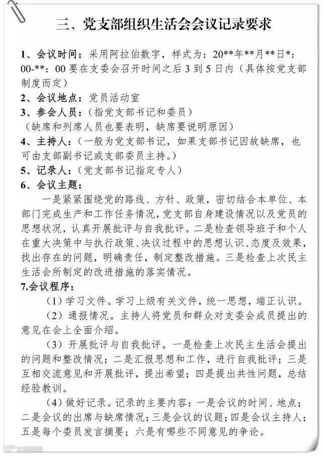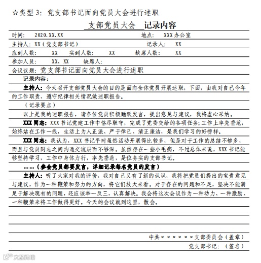 党支部组织生活会会议记录要求及样式