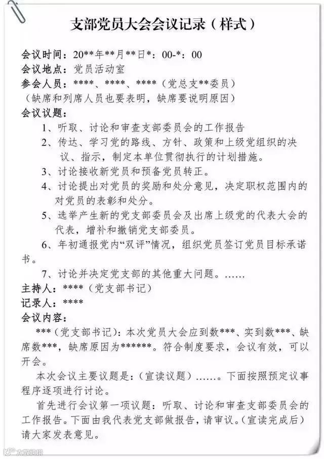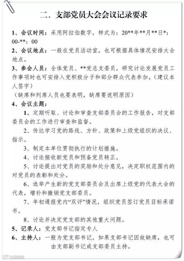 支部党员大会会议记录要求及样式