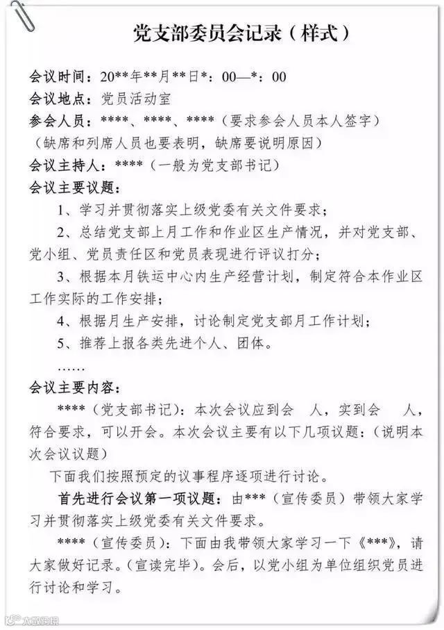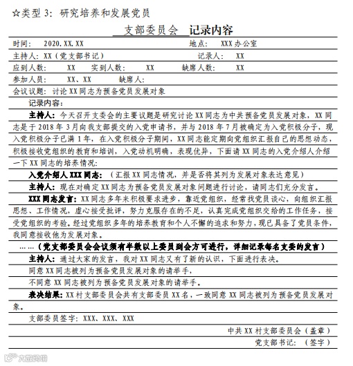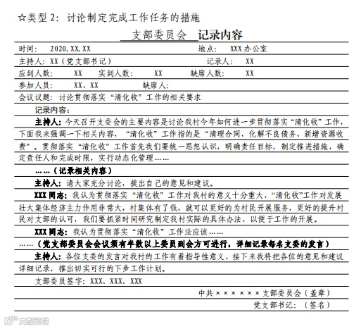 党支部委员会记录要求及样式